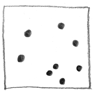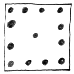 Viele gleichartige Elemente, die scheinbar zufällig im Raum verteilt sind, vermitteln den Eindruck von Weite, Offenheit oder Chaos.