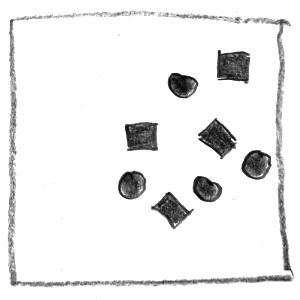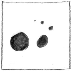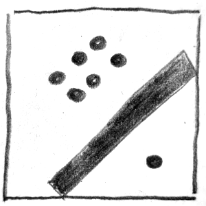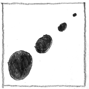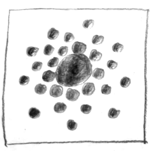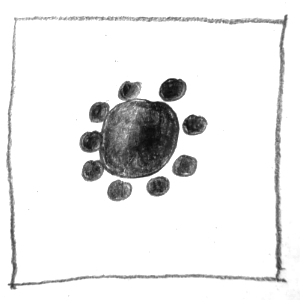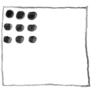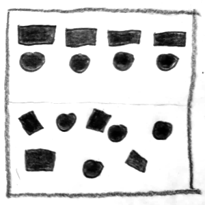 Bei dieser Aufgabe soll man einfache grafische Elemente wie Punkte, Kreise oder Quadrate verwenden, um bestimmte Begriffspaare (z. B. groß – klein, geordnet – ungeordnet) als Skizzen darzustellen. Wichtig ist dabei eine abstrakte Darstellung, also keine Bilder oder Symbole. Es soll erforscht werden, wie man durch Größe, Anzahl, Anordnung und Position eine bestimmte Wirkung oder Aussage erzeugen kann – zum Beispiel Tiefe, Ordnung oder Spannung.
