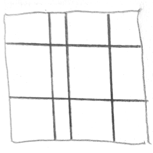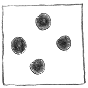 Durch unterschiedliche Abstände zum Bildrand oder zur Bildmitte lässt sich Nähe oder Distanz simulieren – ein einfaches Mittel zur Darstellung von Raum.