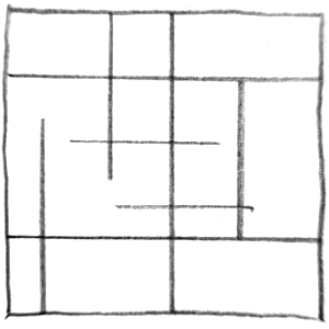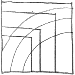 Unterschiedlich lange Linien brechen die Symmetrie und bringen eine leichte Unruhe oder Bewegung in die Komposition.