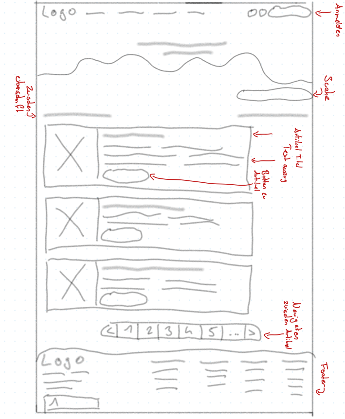 In diesem Wireframe zeige ich meine Version der Newsletter-Übersicht.