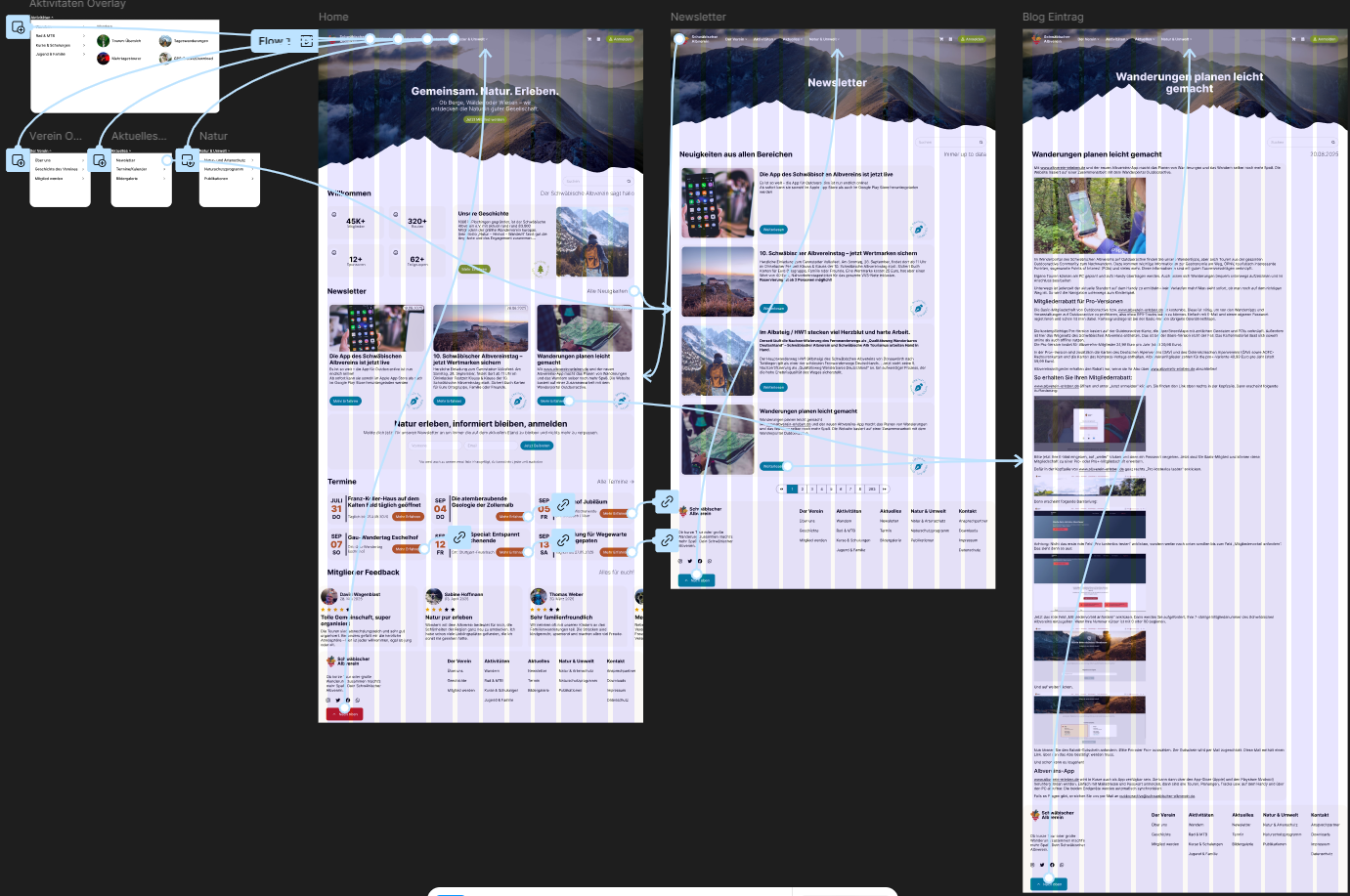 Wie in der Abbildung zu sehen, habe ich die ursprüngliche Informationsarchitektur und Navigationsstruktur der Website umfassend überarbeitet und an die Hauspseite des Albvereines angepasst.